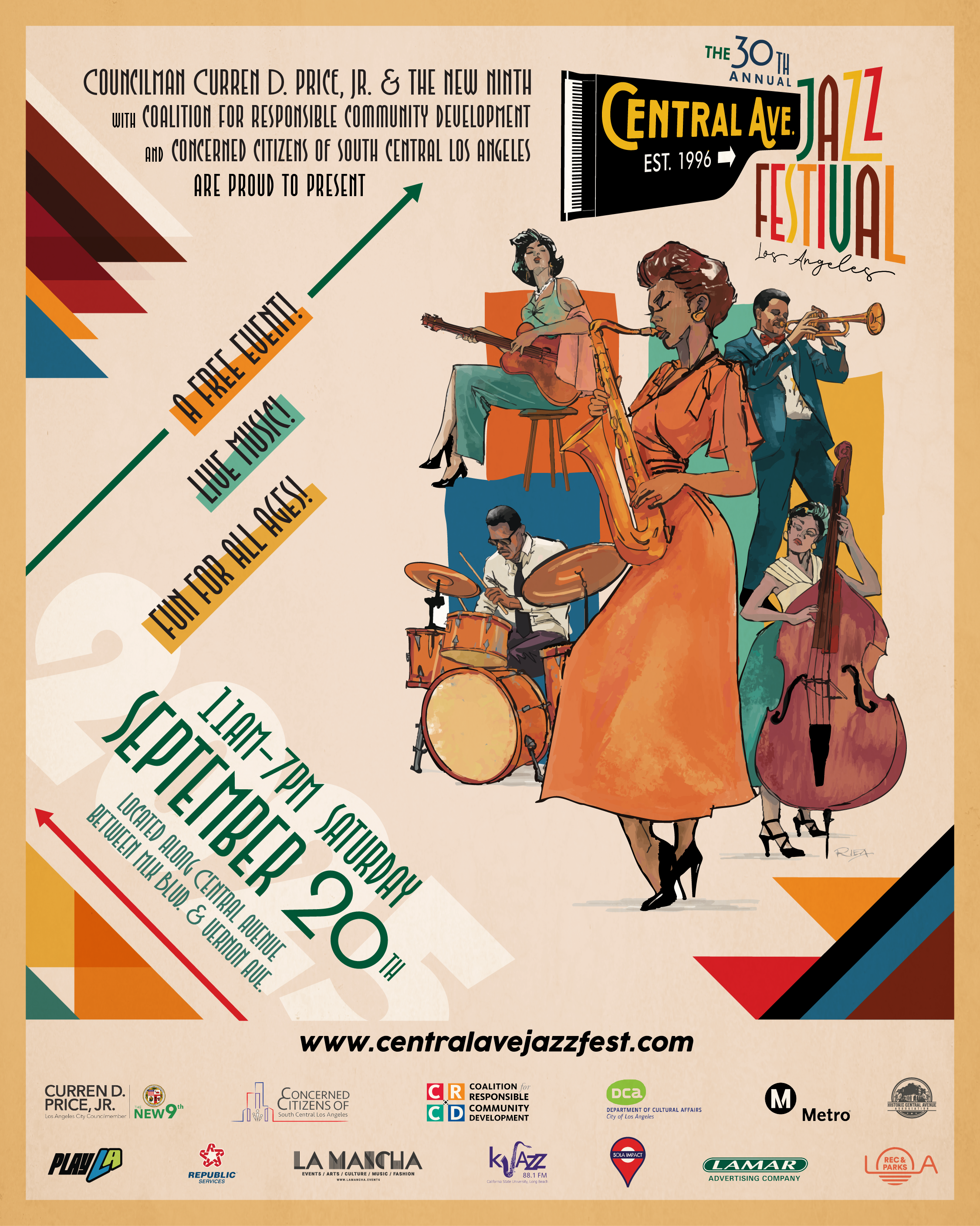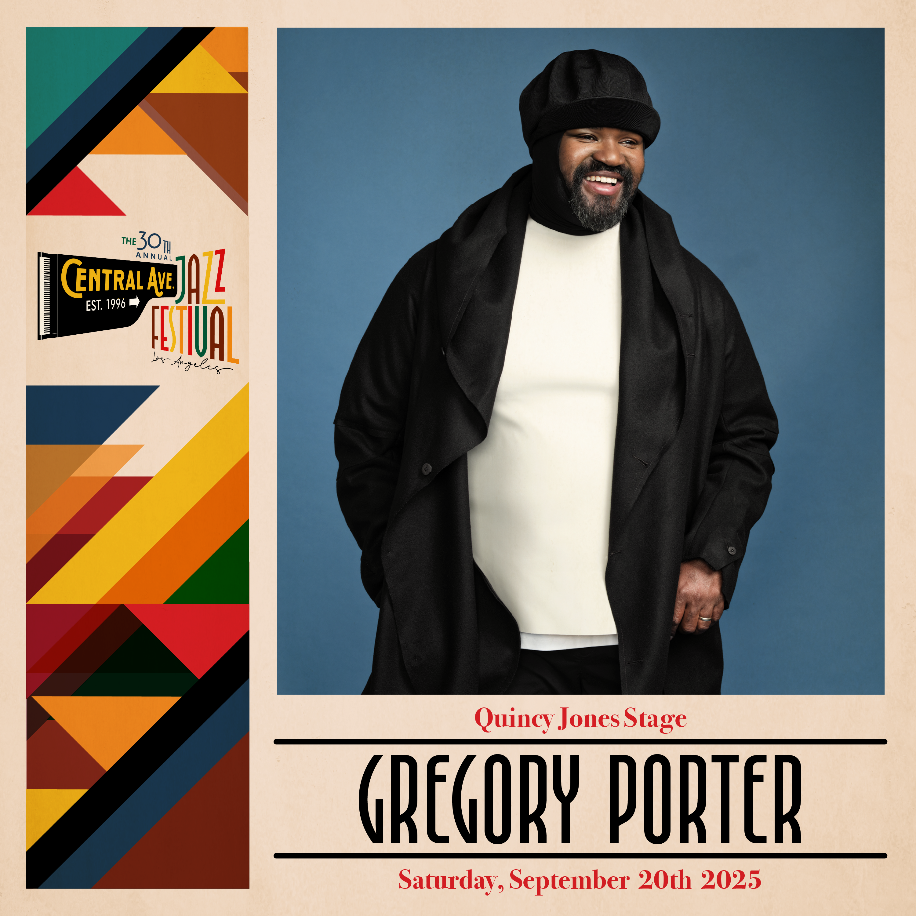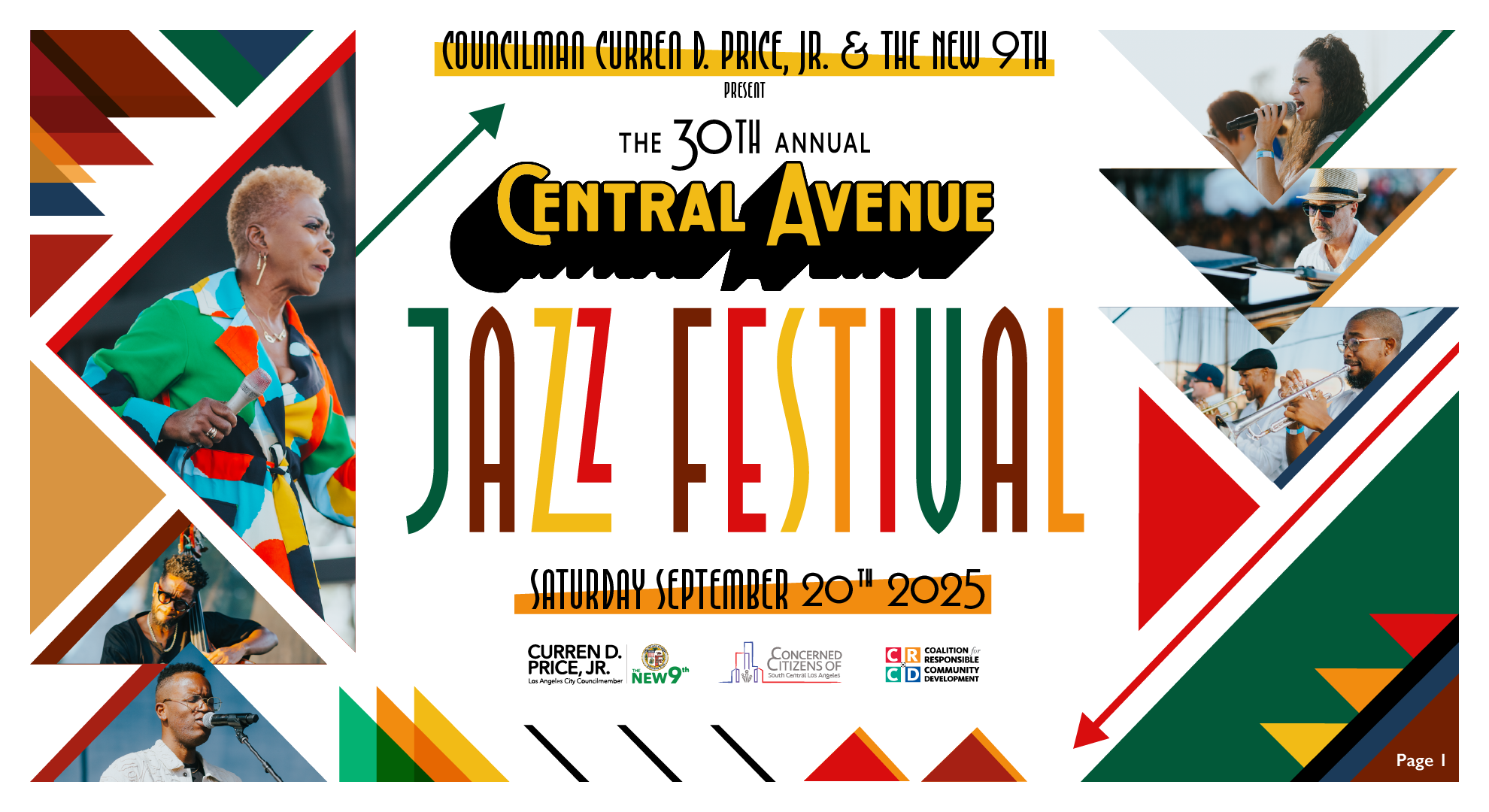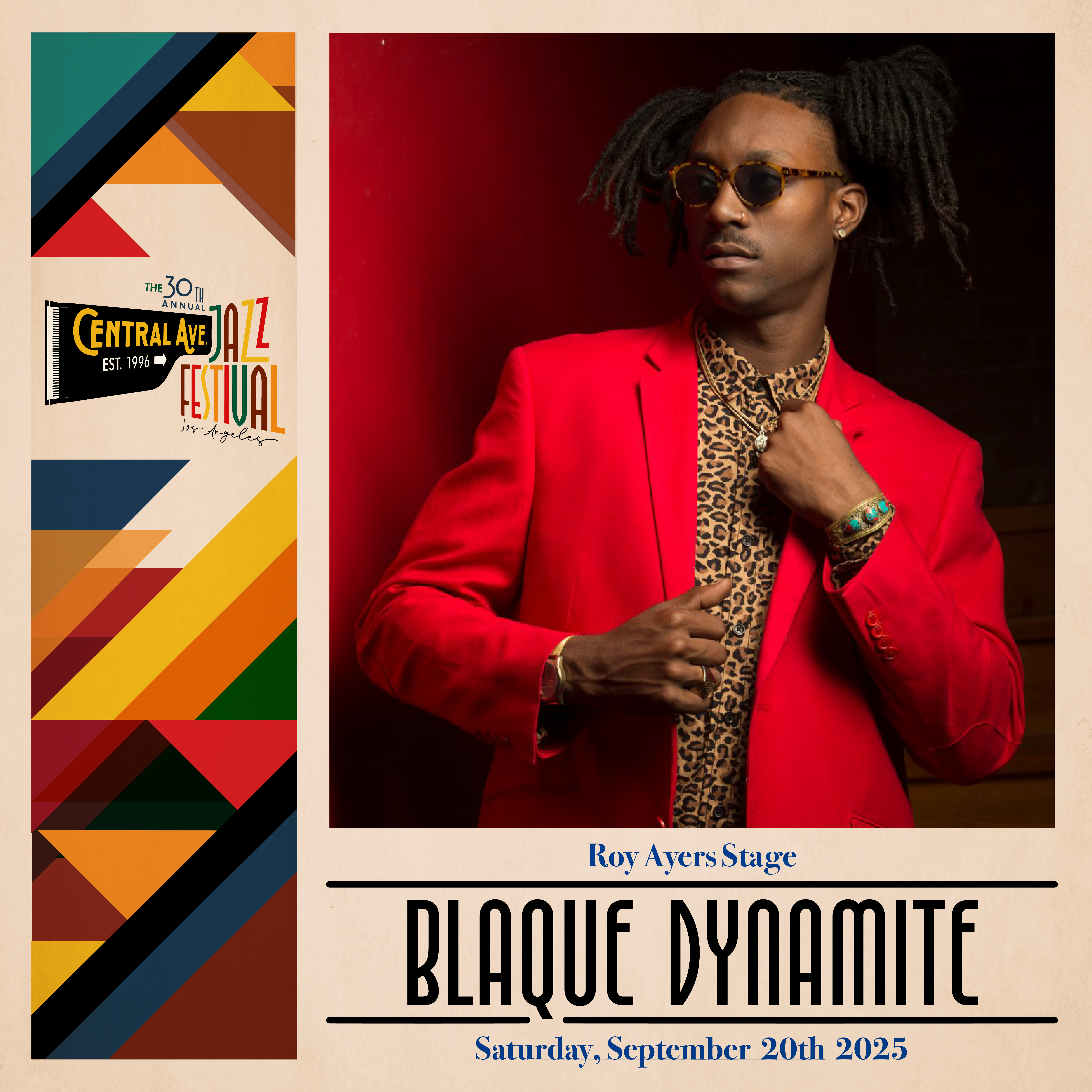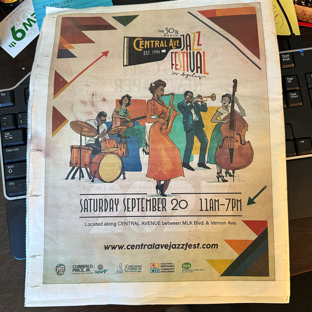 Although 2025 was my third consecutive year as lead graphic designer for the Central Ave Jazz Fest, it was reallyimportant to get the overall visual style right for the 30th Annual fixture. The community's current ethnic breakdown shows that African Americans and Latinos comprise 90% of the audience, with ages 36-50 making up 35% and ages 51+ at 40%. I wanted the design to be attractive, as well as to reflect and resonate with the people of the community.